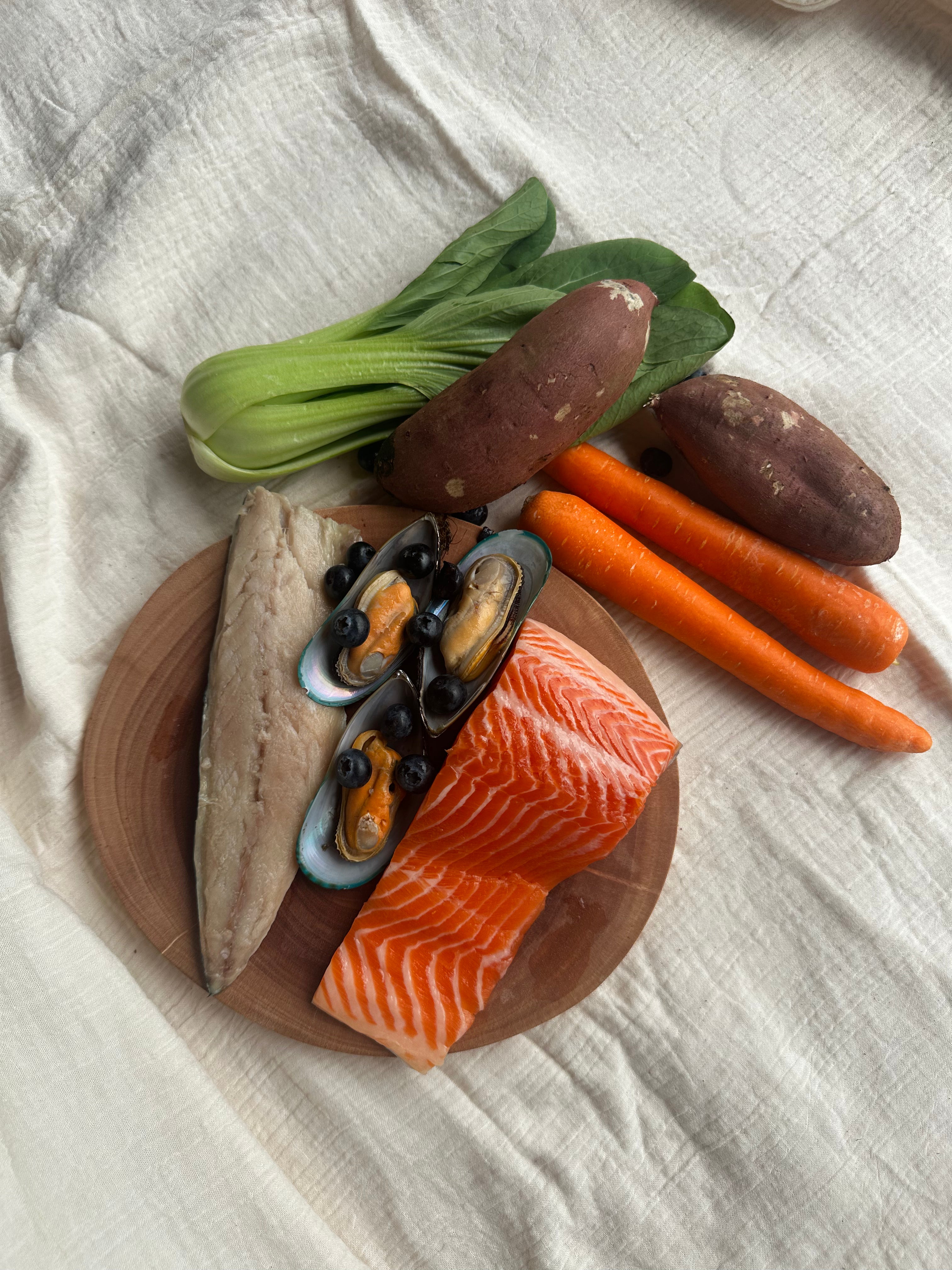 Fresh means fresh whole foods like meat and vegetables that is gently cooked. We believe gently cooked food is the best food for the modern domesticated dog - they're easy to digest and has way more bioavailable minerals & nutrients for your pup to absorb.