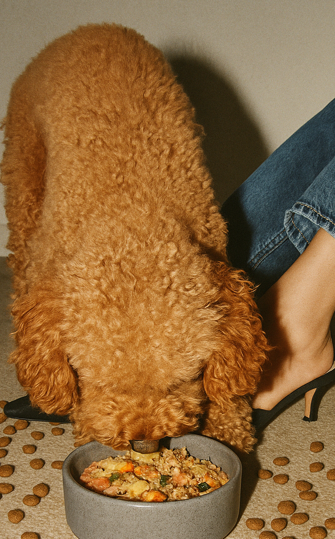 Because benni is yumsss and dogs should get more yum things. In all seriousness, fresh food is 3-4x heavier in weight than kibble. This is because fresh food contains natural moisture and whole ingredients. Your dog's benni bowl will be more digestible, satisfying, and hydrating - all without any artificial flavourings, preservatives, or bulking agents.